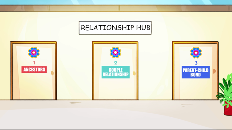 The Relational Hub includes concise information about the relationship within the couple, with the family of origin, and with the future child. By visiting rooms 1-3 of this Hub, future parents can learn more and become aware of their attitudes towards relational issues.